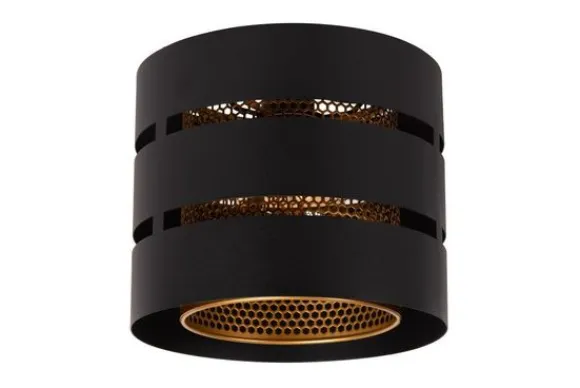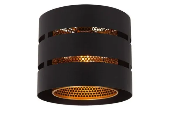Plafondlamp Rosas van het merk Lucide is een compacte krachtpatser met een luxe uitstraling. Het robuuste metalen design krijgt extra karakter door de goudkleurige honingraatstructuur aan de binnenzijde, die zorgt voor een warme en sfeervolle lichtval.