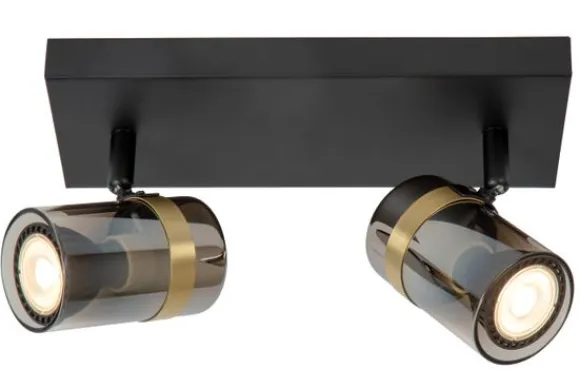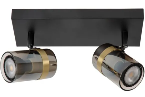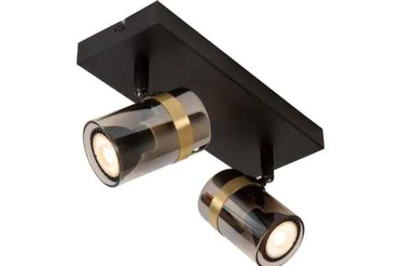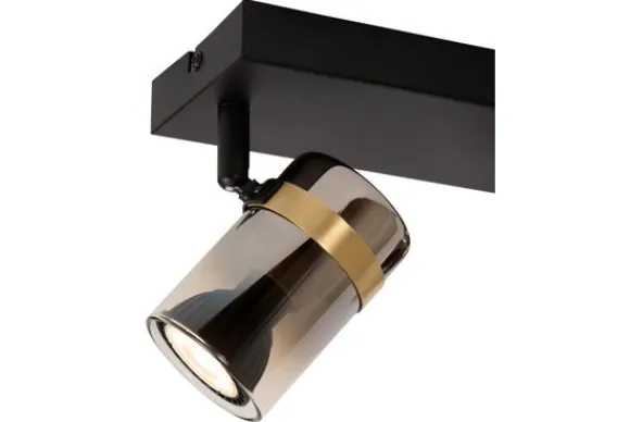 Plafondlamp Upton van het merk Lucide is een verfijnde spotlight met een krachtige uitstraling. De combinatie van een matzwarte basis met twee draaibare spots in gerookt glas en een gouden messing accent creëert een spannend contrast tussen stoer en chic. Het resultaat is een luxueuze plafondlamp die zowel functioneel als stijlvol is.