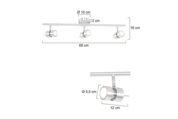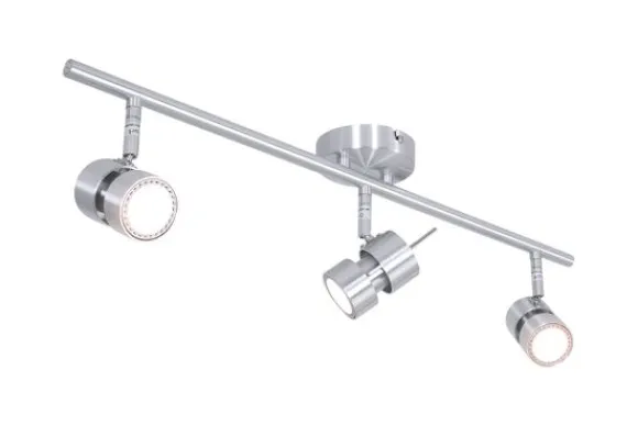 Plafondlamp Natasja 7903ST van het merk Steinhauer is een moderne drielichts spot in geborsteld staal. De plafondspot is verstelbaar (draaibaar en kantelbaar), zodat je zelf kan bepalen waar het licht naar toe schijnt. Voorzien van driemaal een LED-module (maximaal 3*7 watt). Inclusief Osram lampje. Verlicht elke hoek, waar nodig. De totale hoogte is 19 cm en het armatuur heeft een lengte van 68 cm.