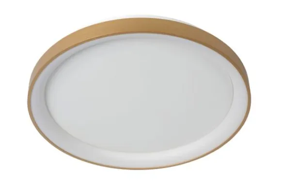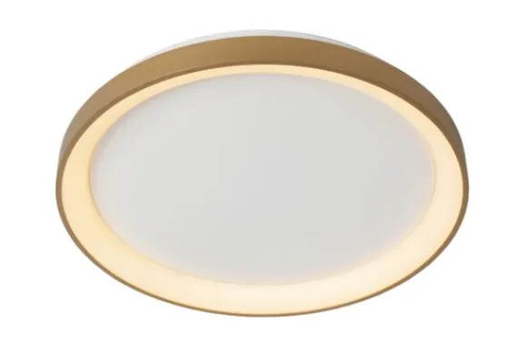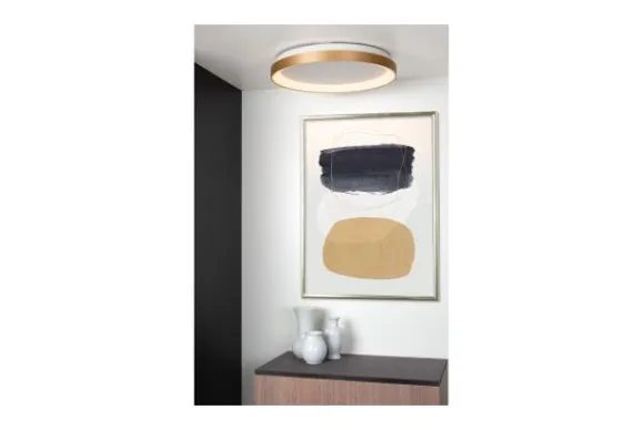 Plafondlamp Vidal van het merk Lucide blijft een elegante lamp met subtiel licht door zijn melkwitte uitvoering en messing ring. De lamp doet het goed in een speels interieur met warme accenten. Zijn armatuur heeft een diameter van 48 centimeter en is 6 centimeter hoog. Door middel van een externe dimmer speel je moeiteloos met de lichtintensiteit. Aan of uit, Vidal geeft extra cachet aan de kamer. Deze lamp wordt geleverd inclusief lichtbron met een levensduur van 30.000 uren en een CRI (color rendering index) van 80.