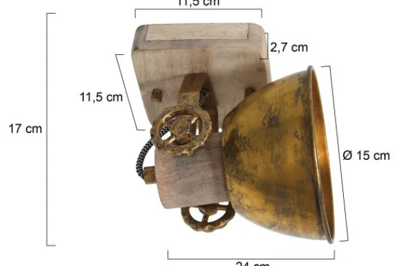 Plafondlamp Gearwood 7968BR uit de serie Mexlite van Steinhauer is een 1-lichts plafond- of wandspot van bronskleurig metaal met hout. Deze industriële spot is draai- en kantelbaar en verstelbaar middels grote verstel wielen. De plafondlamp beschikt over een E27 fitting geschikt voor alle lichtbronnen tot 40 Watt. De lamp is dimbaar middels een externe dimmer en heeft een nikkel kleurige reflector. De armatuur is voorzien van houten accenten. De diameter van de kap is 15 cm en de totale hoogte van het armatuur is 19 cm.