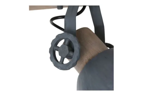 Plafondlamp 7969GR Mexlite Gearwood van het merk Steinhauer is een grijze plafondlamp vervaardigd uit metaal en hout. Door de houten accenten en grote verstelwielen heeft de plafondlamp een stoere en industriële uitstraling. De lamp is voorzien van een 2-lichts spots met een E27 fitting en is geschikt voor lichtbronnen tot 60 Watt. De kap is draai-/kantelbaar door middel van de grote verstelwielen en de diameter van de kap is 15 cm. Een leuke bijkomstigheid is dat de lamp dimbaar is middels een externe dimmer en dimbare lichtbron. De plafondlamp is handig om speciefieke delen in de ruimte te verlichten.