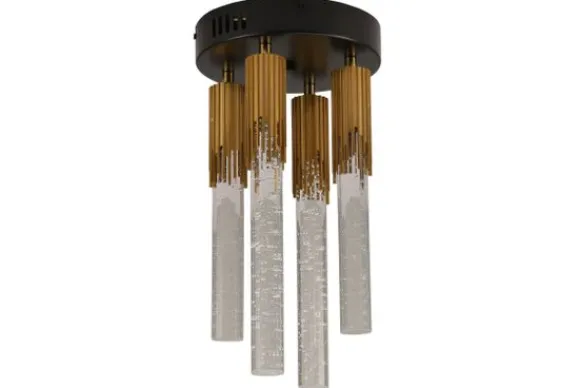 Plafondlamp Maud van het merk Toms Luxury Lights is een luxe lamp met 4 G4 fittingen. De lamp is standaard uitgevoerd in Goud. Het kristal glas heeft kleine bubbels erin, wat voor een speels effect zorgt.