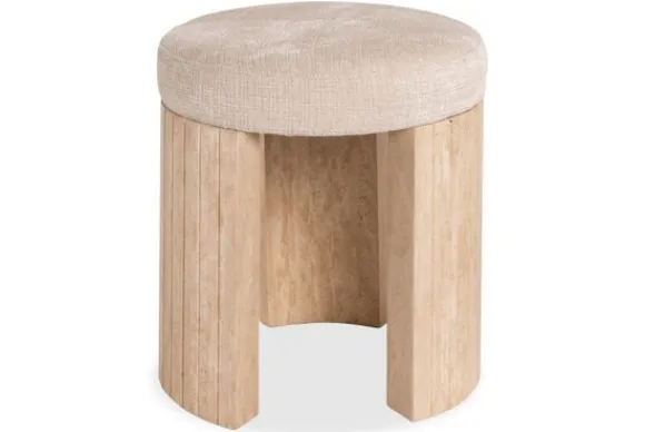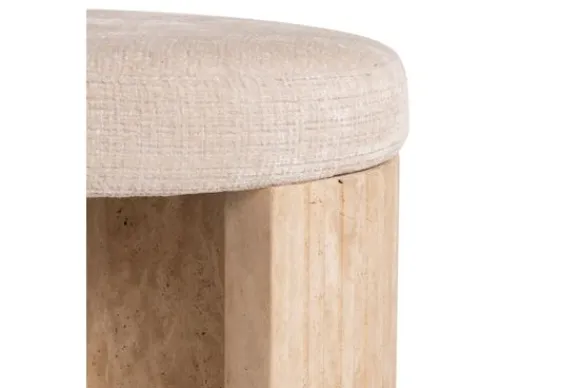 Poef Gallice 212983 van het merk Richmond Interiors is vervaardigd van Natural Beige Travertine. Deze ronde poef is ideaal om lekker je benen op te laten rusten. Door het ronde uiterlijk krijgt elke kamer door deze poef een speels en elegant uiterlijk. De poten zijn gemaakt van travertin.