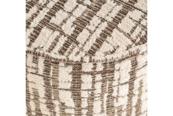 Poef Lexie 213297 Cream Dalia van het merk Richmond Interiors is een moderne poef met een luxueuze uitstraling. De grove structuurstof in wit en beige creëert een speels lijnenspel dat doet denken aan een abstract kunstwerk.