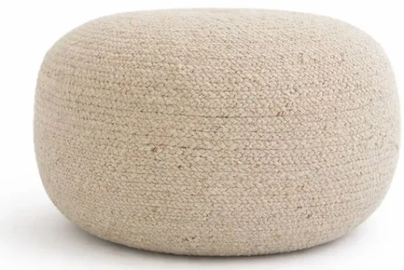 Poef Ease Light Beige van het merk Beside Rugs brengt een gevoel van rust en zachtheid in het interieur. De ronde vorm en de wolstructuur zorgen voor een vriendelijke en uitnodigende uitstraling.