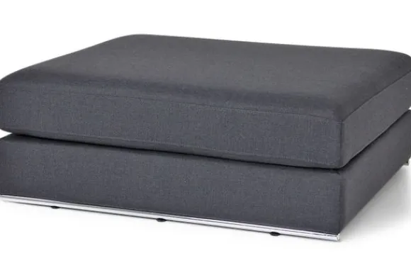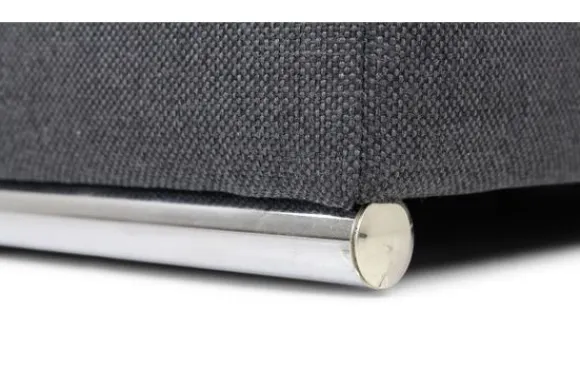Deze hocker wordt standaard uitgevoerd met een dunne chromen buis onder de hocker.