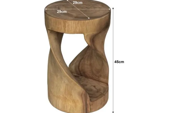 Kruk Suar van het merk Livingfurn is uitgevoerd in massief suar hout en heeft een organisch gedraaide vorm. De ronde zitting en opengewerkte basis geven het meubel een robuuste uitstraling. De natuurlijke kleurverschillen en zichtbare houtstructuur maken elke kruk uniek. Dit model past goed binnen een landelijk interieur en sluit ook aan bij een Japandi woonstijl.