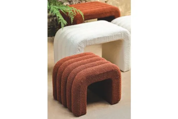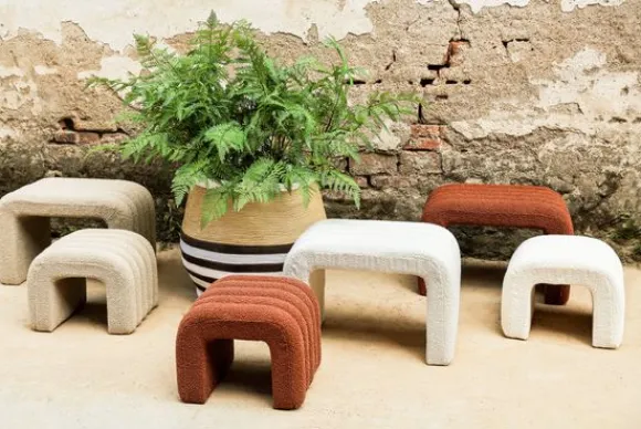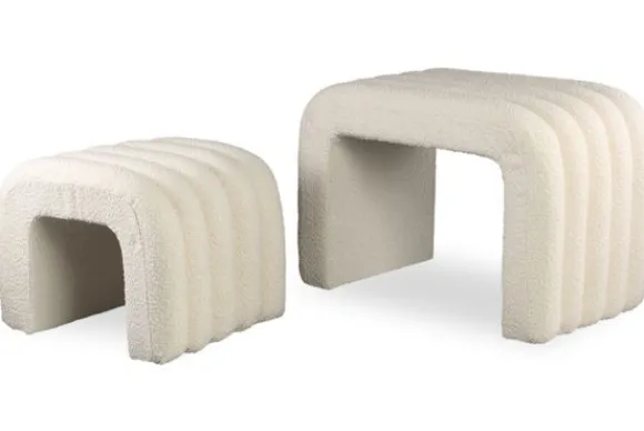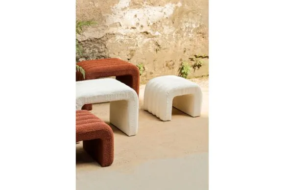 Poefset Allysha van het merk PTMD is hier uitgevoerd in de kleur Cream. De set is ook verkrijgbaar in de kleuren Rust en Beige. De set bestaat uit twee poefen. Deze kun je los in de kamer neerzetten of in elkaar schuiven als je even meer ruimte nodig hebt. De poefen hebben een speels ontwerp, dankzij het boog vorm en de stiksels. De poefen zijn uitgevoerd in een boucle stof, dit maakt het helemaal af!