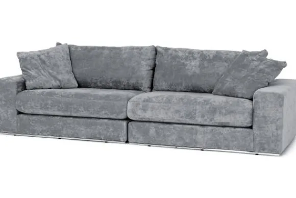 Deze bank wordt standaard uitgevoerd inclusief sierkussens en met een dunne chromen buis onder de bank.
