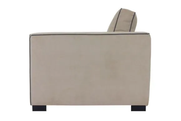 De bank is standaard uitgevoerd met een geknepen naad. Je kunt ook kiezen voor een dichte naad. Voor extra veelzijdigheid en comfort is er een bijpassende poef beschikbaar, perfect te gebruiken als voetenbank, tafel of extra zitplaats. Ook zijn er losse armsteunen mee te bestellen. Al deze opties worden uitgevoerd in dezelfde stof als voor de bank gekozen wordt.