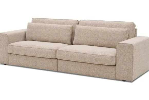 Bankstel Janique van het merk Grandelle is een ruime bank met een zachte, volle stoffering en een rustige uitstraling. De brede armleuningen en diepe zit zorgen voor comfort en een ontspannen zitervaring. De kussens die op de foto zijn afgebeeld worden standaard meegeleverd.
