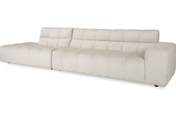 Je kunt kiezen uit verschillende materialen, waaronder rundleder en stoffen als velvet en boucle. Daarnaast is de bank verkrijgbaar in een breed scala aan kleuren.
