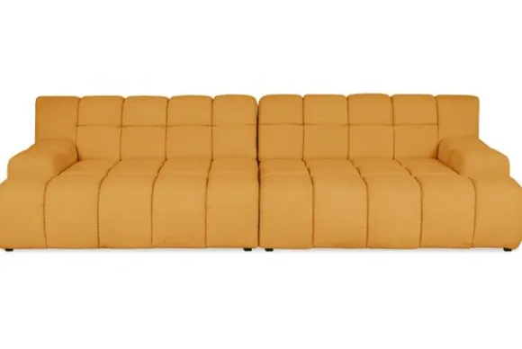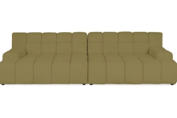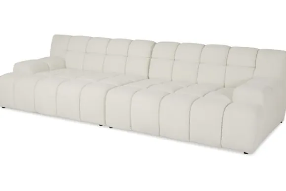 Je kunt kiezen uit verschillende materialen, waaronder stoffen als velvet en boucle. Daarnaast is de bank verkrijgbaar in uiteenlopende kleuren.