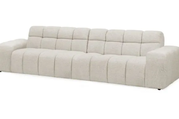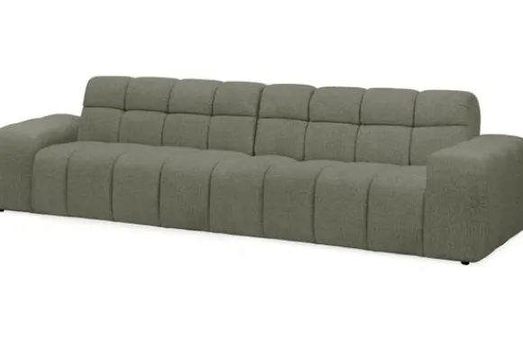 Je kunt kiezen uit verschillende materialen, waaronder stoffen als velvet en boucle. Daarnaast is de bank verkrijgbaar in uiteenlopende kleuren.