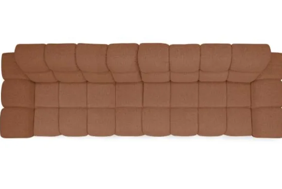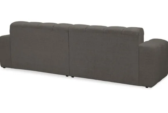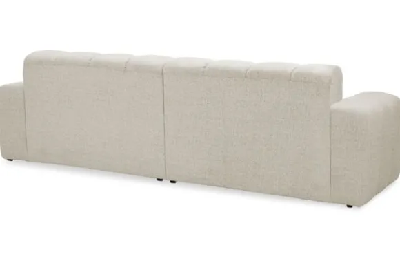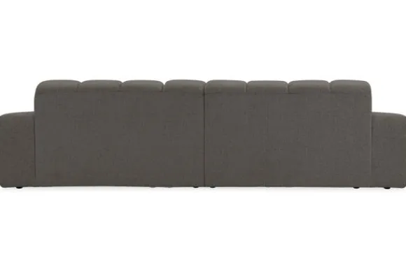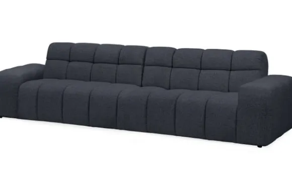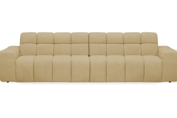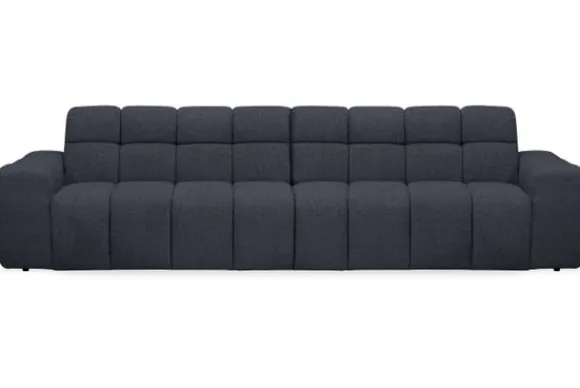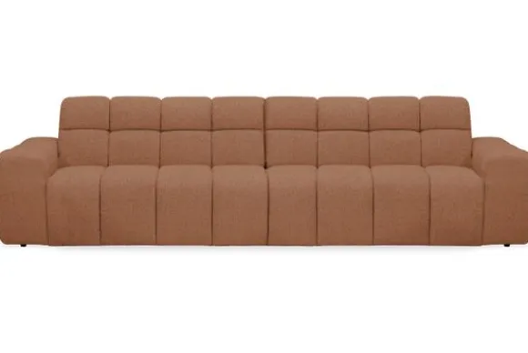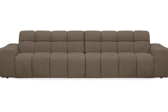 Bankstel Treviso van het merk Moderno is een bank met geblokte zit- en rugkussens en een zitting die doorloopt tot net boven de grond.