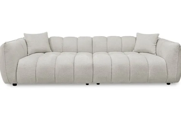 De bank valt op door de diepe stiknaden en de golvende belijning in de zitting en rugleuning. Deze details geven het ontwerp een speelse, maar stijlvolle look die direct karakter toevoegt aan je woonkamer.