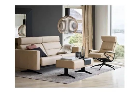Bankstel Stella van het merk Stressless is verkrijgbaar in alle kleuren en verschillende materiaalsoorten als stof, rundleder en kunstleder. Dit bankstel reageert op je bewegingen, dankzij het Stressless® BalanceAdapt™-systeem past de bank zich perfect aan. Of je nu achterover leunt of voorover, of je ligt of je voeten omhoog legt, de bank past zich meteen aan je positie aan. Als je een gewone bank wil kan je de functie simpelweg vergrendelen zodat de zitting zich niet meer beweegt.