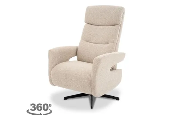 Relaxfauteuil Tampere CM-55.060 van het merk LABEL51 is de ultieme combinatie van comfort en stijl. Deze prachtige fauteuil is uitgevoerd met een 360 graden draaibare poot en gestoffeerd met een luxe bouclé stof in de kleur Natural, wat zorgt voor een zachte textuur en een uitnodigend uiterlijk.