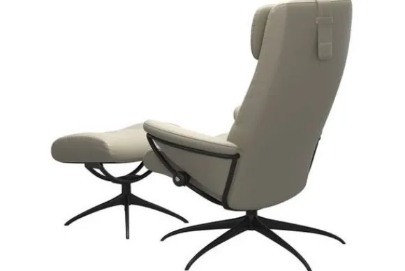 Relaxfauteuil Berlin Highback van het merk Stressless is verkrijgbaar in alle kleuren. Tevens is de fauteuil leverbaar in stof en rundleder. Je kunt bij deze fauteuil kiezen uit diverse maten zoals Small, Medium en Large. Deze fauteuil heeft een Plus en Glide Systeem: Aan beide zijden van de fauteuil zit een knop waarmee je de weerstand van de stoel kan aanpassen naar eigen behoefte. Door de knoppen in tegengestelde richting te draaien stel je jouw ideale relaxpositie samen. Op die manier krijgt de nek en de onderrug goede onderstuening. Door de rugleuning naar voren te buigen activeer je de slaapfunctie. Op het moment dan je weer rechtop komt stelt de stoel zichzelf weer bij naar de normale stand.