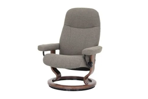 Relaxfauteuil Consul Classic van het merk Stressless is verkrijgbaar in alle kleuren. Tevens is de fauteuil leverbaar in stof en rundleder. Je kunt bij deze fauteuil kiezen uit diverse maten zoals Small, Medium en Large. Deze fauteuil heeft een Plus en Glide Systeem: Aan beide zijden van de fauteuil zit een knop waarmee je de weerstand van de stoel kan aanpassen naar eigen behoefte. Door de knoppen in tegengestelde richting te draaien stel je jouw ideale relaxpositie samen. Op die manier krijgt de nek en de onderrug goede ondersteuning. Door de rugleuning naar voren te buigen activeer je de slaapfunctie. Op het moment dan je weer rechtop komt stelt de stoel zichzelf weer bij naar de normale stand.