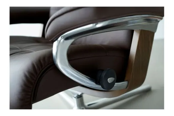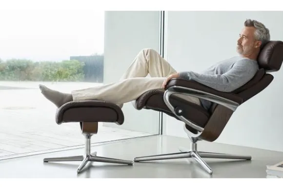 Relaxfauteuil Erik Cross van het merk Stressless is verkrijgbaar in alle kleuren. Tevens is de fauteuil leverbaar in stof en rundleder. Je kunt bij deze fauteuil kiezen uit diverse maten zoals Small, Medium en Large. Deze fauteuil heeft een Plus en Glide Systeem: Aan beide zijden van de fauteuil zit een knop waarmee je de weerstand van de stoel kan aanpassen naar eigen behoefte. Door de knoppen in tegengestelde richting te draaien stel je jouw ideale relaxpositie samen. Op die manier krijgt de nek en de onderrug goede onderstuening. Door de rugleuning naar voren te buigen activeer je de slaapfunctie. Op het moment dan je weer rechtop komt stelt de stoel zichzelf weer bij naar de normale stand.