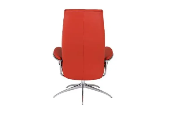 Relaxfauteuil London Highback van het merk Stressless is verkrijgbaar in alle kleuren. Tevens is de fauteuil leverbaar in stof en rundleder. Je kunt bij deze fauteuil kiezen uit diverse maten zoals Small, Medium en Large. Deze fauteuil heeft een Plus en Glide Systeem: Aan beide zijden van de fauteuil zit een knop waarmee je de weerstand van de stoel kan aanpassen naar eigen behoefte. Door de knoppen in tegengestelde richting te draaien stel je jouw ideale relaxpositie samen. Op die manier krijgt de nek en de onderrug goede ondersteuning. Door de rugleuning naar voren te buigen activeer je de slaapfunctie. Op het moment dan je weer rechtop komt stelt de stoel zichzelf weer bij naar de normale stand.