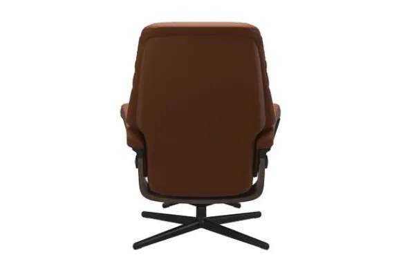 Relaxfauteuil Sunrise Cross van het merk Stressless is verkrijgbaar in alle kleuren. Tevens is de fauteuil leverbaar in stof en rundleder. Je kunt bij deze fauteuil kiezen uit diverse maten zoals Small, Medium en Large. Deze fauteuil heeft een Plus en Glide Systeem: Aan beide zijden van de fauteuil zit een knop waarmee je de weerstand van de stoel kan aanpassen naar eigen behoefte. Door de knoppen in tegengestelde richting te draaien stel je jouw ideale relaxpositie samen. Op die manier krijgt de nek en de onderrug goede onderstuening. Door de rugleuning naar voren te buigen activeer je de slaapfunctie. Op het moment dan je weer rechtop komt stelt de stoel zichzelf weer bij naar de normale stand.