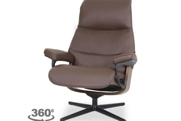 Relaxfauteuil View Cross van het merk Stressless is verkrijgbaar in alle kleuren. Tevens is de fauteuil leverbaar in stof en rundleder. Je kunt bij deze fauteuil kiezen uit diverse maten zoals Small, Medium en Large. Deze fauteuil heeft een Plus en Glide Systeem: Aan beide zijden van de fauteuil zit een knop waarmee je de weerstand van de stoel kan aanpassen naar eigen behoefte. Door de knoppen in tegengestelde richting te draaien stel je jouw ideale relaxpositie samen. Op die manier krijgt de nek en de onderrug goede ondersteuning. Door de rugleuning naar voren te buigen activeer je de slaapfunctie. Op het moment dan je weer rechtop komt stelt de stoel zichzelf weer bij naar de normale stand.