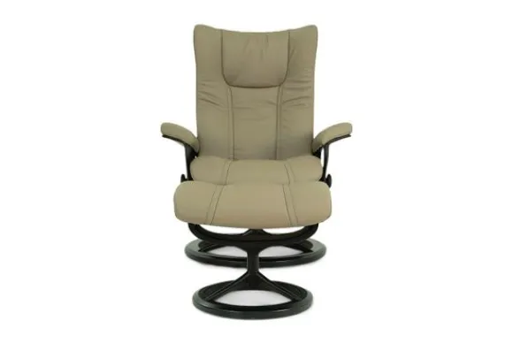 Relaxfauteuil Wing Signature van het merk Stressless is verkrijgbaar in meer dan 150 kleuren. Tevens is de fauteuil leverbaar in stof en rundleder. Je kunt bij deze fauteuil kiezen uit diverse maten zoals Small, Medium en Large. Deze fauteuil heeft een Plus en Glide Systeem: Aan beide zijden van de fauteuil zit een knop waarmee je de weerstand van de stoel kan aanpassen naar eigen behoefte. Door de knoppen in tegengestelde richting te draaien stel je jouw ideale relaxpositie samen. Op die manier krijgt de nek en de onderrug goede ondersteuning. Door de rugleuning naar voren te buigen activeer je de slaapfunctie. Op het moment dan je weer rechtop komt stelt de stoel zichzelf weer bij naar de normale stand.