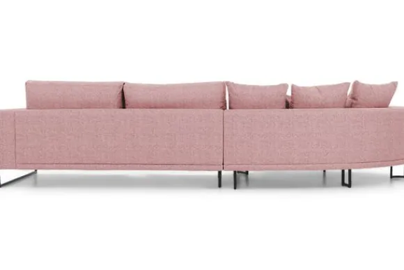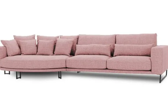 Loungebank Dordoni II van het merk Be Inspired is verkrijgbaar in meer dan 200 kleuren. Tevens is de bank leverbaar in materiaalsoorten zoals ribstof, teddy en velvet. Je kunt kiezen uit diverse afmetingen. De Dordoni II bank wordt standaard uitgevoerd met alle sierkussens en lendekussens die ook op de foto te zien zijn. De rugkussens daar achter zijn lekker hoog, deze combinatie zorgt voor een goede ondersteuning van de rug. Alle rugkussens zitten los en zijn omkeerbaar, de zitkussens zitten vast met klittenband. Het unieke aan de Dordoni II is het ronde loungegedeelte. Je kunt hier lekker wegkruipen tussen alle sierkussens. Deze bank oogt ruimtelijk door de hoge metalen sledepoten.