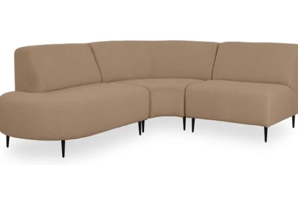 Hoekbank Payton van het merk Kenzo is een verfijnde en stijlvolle toevoeging aan elk interieur, met een uniek design dat wordt gekenmerkt door ronde, organische vormen. De rug- en armleuningen vloeien moeiteloos in elkaar over, wat zorgt voor een harmonieus en modern geheel. Een comfortabele zit wordt gegarandeerd door de hoogwaardige nosag vering, afgedekt met polyamide, en een vulling van koudschuim HR38, afgewerkt met een zachte laag dacron.