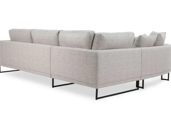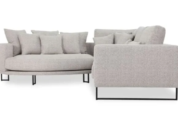 Hoekbank Dordoni II van het merk Be Inspired is verkrijgbaar in alle kleuren en in materiaalsoorten zoals ribstof, teddy en velvet. Je kunt kiezen uit diverse afmetingen. De Dordoni II bank wordt standaard uitgevoerd met alle sierkussens en lendekussens die ook op de foto te zien zijn. Je kunt dus lekker wegkruipen tussen alle sierkussens. De rugkussens daarachter zijn lekker hoog, deze combinatie zorgt voor een goede ondersteuning van de rug. Alle rugkussens zitten los en zijn omkeerbaar, de zitkussens zitten vast met klittenband. Deze bank oogt ruimtelijk door de hoge metalen sledepoten.