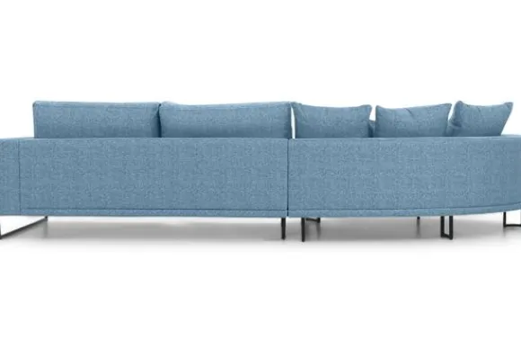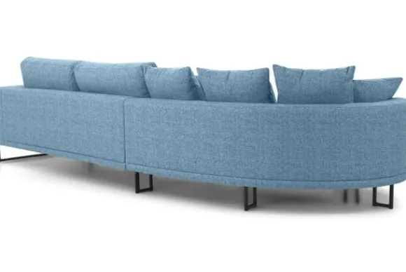 Loungebank Dordoni II van het merk Be Inspired is verkrijgbaar in alle kleuren en in verschillende materiaalsoorten zoals ribstof, teddy en velvet. Je kunt kiezen uit diverse afmetingen. De Dordoni II bank wordt standaard uitgevoerd met alle sierkussens en lendekussens die ook op de foto te zien zijn. De rugkussens daar achter zijn lekker hoog, deze combinatie zorgt voor een goede ondersteuning van de rug. Alle rugkussens zitten los en zijn omkeerbaar, de zitkussens zitten vast met klittenband. Het unieke aan de Dordoni II is het ronde loungegedeelte. Je kunt hier lekker wegkruipen tussen alle sierkussens. Deze bank oogt ruimtelijk door de hoge metalen sledepoten.