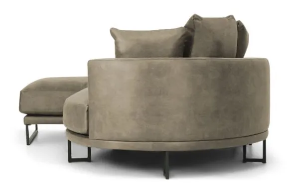 Loungebank Dordoni II van het merk Be Inspired is verkrijgbaar in alle kleuren en in materiaalsoorten zoals ribstof, teddy en velvet. De Dordoni II bank wordt standaard uitgevoerd met alle sierkussens en lendekussens die ook op de foto te zien zijn. De rugkussens daar achter zijn lekker hoog, deze combinatie zorgt voor een goede ondersteuning van de rug. Alle rugkussens zitten los en zijn omkeerbaar, de zitkussens zitten vast met klittenband. Het unieke aan de Dordoni II is het ronde loungegedeelte. Je kunt hier lekker wegkruipen tussen alle sierkussens. Deze bank oogt ruimtelijk door de hoge metalen sledepoten.