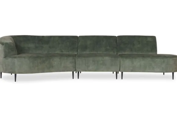 De bank kan in talloze materialen worden geleverd, waaronder leder en zachte stoffen als velvet en bouclé. Alle varianten zijn beschikbaar in verschillende kleuren, waarmee je jouw zithoek compleet maakt.