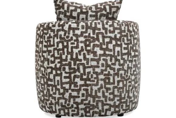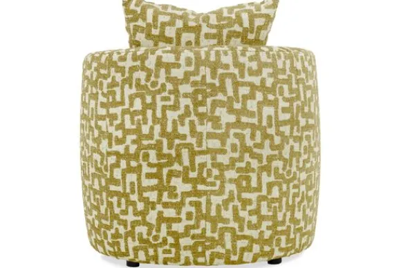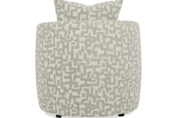 De fauteuil biedt veel zitcomfort door de ronde zitting en het ondersteunende rugkussen. Een bijpassende hocker is optioneel voor extra ontspanning in de woonkamer.