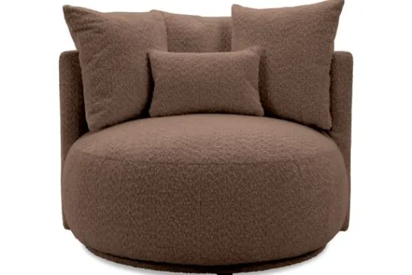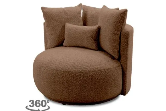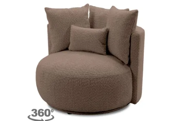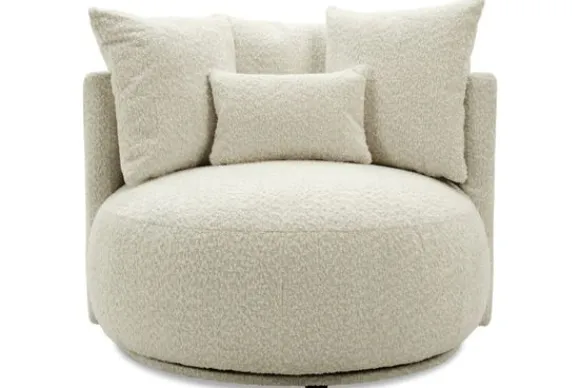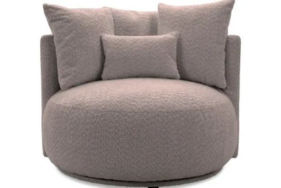 Draaifauteuil Alana van het merk Donc is een royale fauteuil met een ronde vorm en zachte kussens. De speelse look en comfortabele zitting maken fauteuil Alana tot een echte eyecatcher in elke woonkamer.