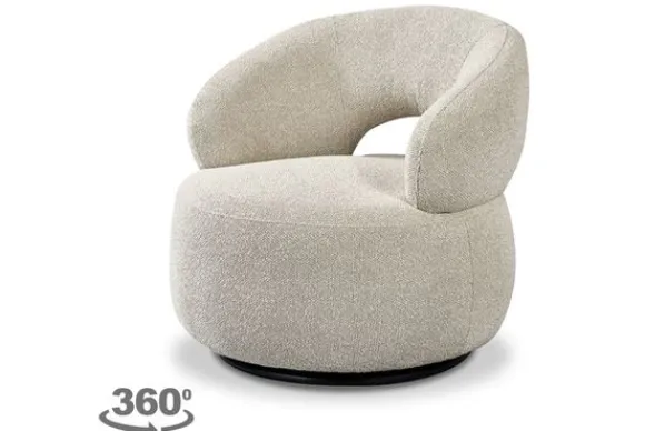 Draaifauteuil Nusenna GA-80.213 van het merk Label51 is een opvallende stoel met ronde vormgeving. De fauteuil is bekleed met de stof Royal Boucle Natural 110.
