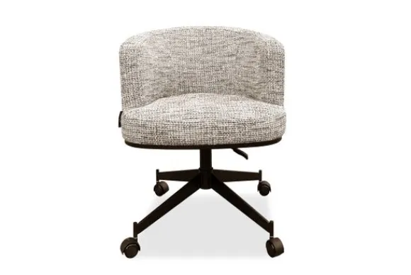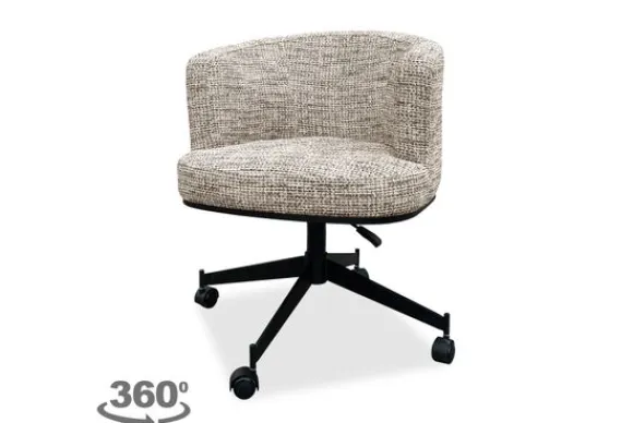 Draaifauteuil Rochenne is voorzien van een 360-graden draaifunctie en is in de hoogte verstelbaar, wat niet alleen flexibiliteit en gebruiksgemak biedt, maar ook een stoere, moderne touch geeft aan het ontwerp. Perfect voor de werkplek, thuiswerkruimte of als decoratieve stoel in de woonkamer. De draaifauteuil is ook beschikbaar in de kleur Beige Graffic, kijk hiervoor bij ”Andere kleuren”.