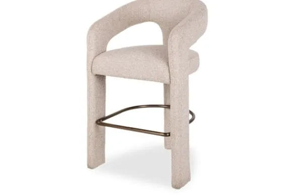 Barkruk Belle 214188 van het merk Richmond Interiors heeft een zachte bekleding in de beige stof Biscotti. De ronde vormen van de zitting en armleuningen zorgen voor een prettige zit.
