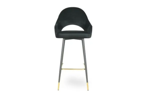 Deze barkurk wordt standaard uitgevoerd met metalen poten in de kleur zwart en gouden details.