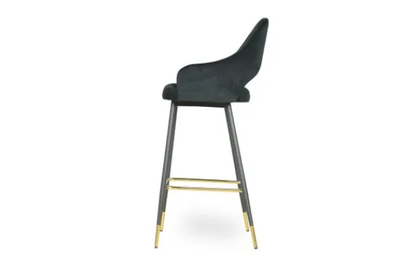 Barkruk Bagneux van het merk Vie Chic is beschikbaar in alle kleuren en in verschillende materiaalsoorten zoals stof, velvet en microvezel. Je kunt kiezen uit verschillende pootkleuren en hoogtes. Een goud detail onderaan de poten is optioneel. Wanneer je kiest voor de barkuk van 98 cm hoog, dan is de zithoogte 66 cm hoog. Wanneer je kiest voor de barkruk van 108 cm hoog, dan is de zithoogte 77 cm. De Bagneux heeft een ronde rugleuning, die doorloopt in armleuningen. Onderin de rugleuning zit een opening. Tussen de poten zit een voetensteun.