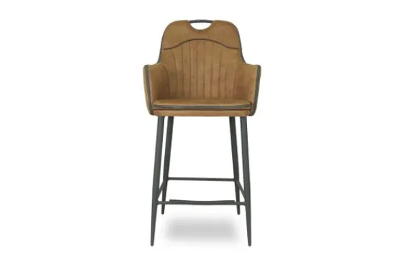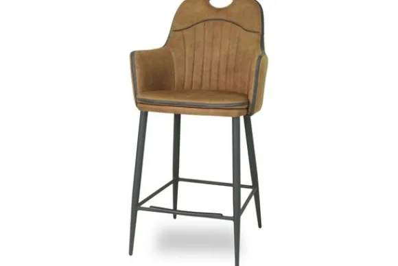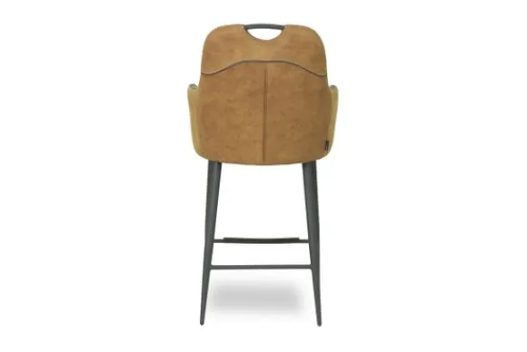 Barkruk Jerry Cognac van het merk Olijk is beschikbaar in de drie volgende kleuren: antraciet, cognac en moss. De barkruk is gestoffeerd met de microvezel stof Luxor Cognac. Microvezel is makkelijk te reinigen, slijtvast en goed bestendig tegen bijvoorbeeld nagels van huisdieren. Verder heeft deze stof een mooie vleug, wat zorgt voor een chique en hippe uitstraling. Jerry is voorzien van een verticaal stiksel in de rug, een handgreep bovenaan de rug en heeft een metalen poot met daartussenin horizontale buizen die je kunt gebruiken om jouw voeten op neer te zetten.