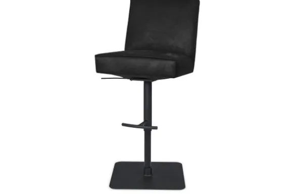 Deze barkruk wordt standaard geleverd met een geknepen naad, een gasveer systeem en een vierkant, zwarte schijf als voet.
