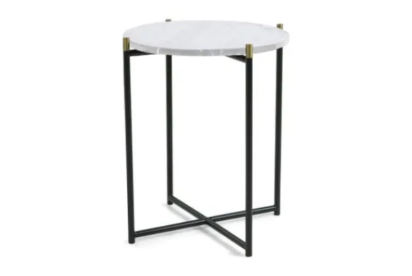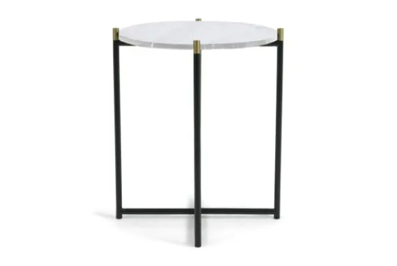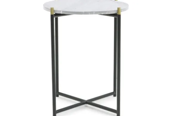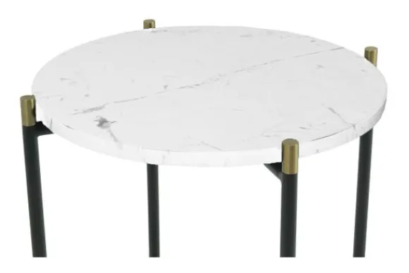 Bijzettafel Weia van het merk Aynur Nova is leverbaar in drie verschillende maten. Deze uitvoering heeft een diameter van 40 cm. De tafel krijgt een chique uitstraling door het witte marmeren blad en de metalen poot met de gouden details.