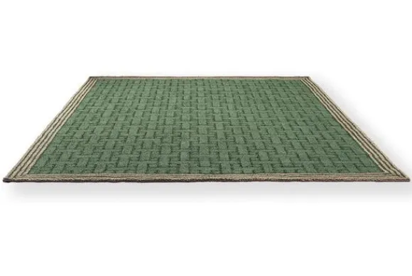 Buitenkleed TB T Monogram Jade Green Outdoor 455807 van het merk Brink & Campman is een echte sfeermaker voor binnen én buiten. Het kleed heeft een stijlvol geweven patroon in groen, omlijst met een subtiele gestreepte rand in beige. Elegant, speels en met een vleugje retro charme.