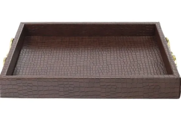 Dienblad Banks 215838 van het merk Richmond Interiors is een rechthoekig dienblad met een luxe uitstraling. Het oppervlak heeft een subtiele krokodillenstructuur. De metalen handgrepen aan de zijkant zorgen voor extra gebruiksgemak.