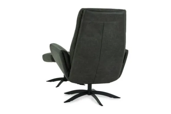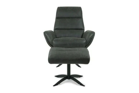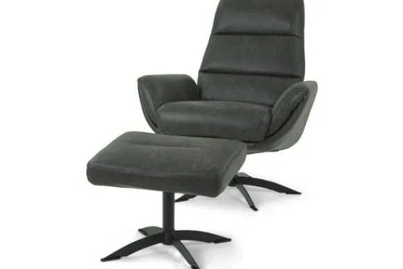 De draaivoet is verkrijgbaar in de kleur zwart of chroom. Deze fauteuil wordt standaard geleverd exclusief de poef, deze is bij te bestellen onder ”extra opties”.