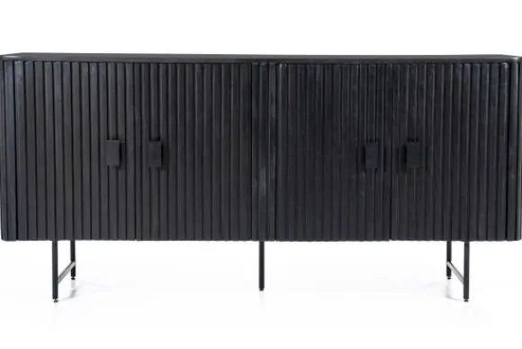 De verticale latten aan de voorzijde geven het dressoir een herkenbare uitstraling. Naast zwart is dit dressoir ook verkrijgbaar in bruin. Dit meubelstuk maakt deel uit van een complete .